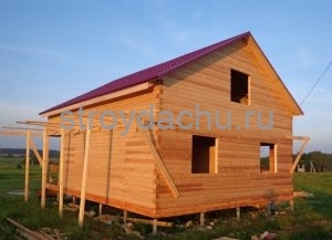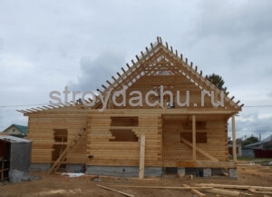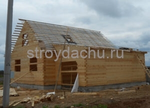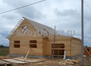 Сруб дома из профилированного бруса 140×140 мм. Размером 6×8 м. крыша ломаная по проекту Матвей