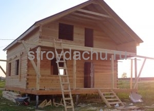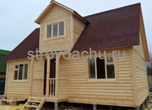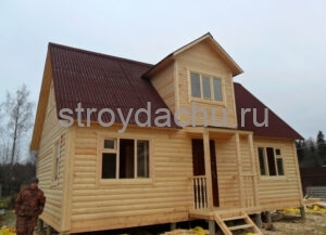 Брусовой дом 8 на 9 полтора этажа Размер: 8 × 9 м. с террасой Этажность: полтора этажа Объект находится: в Московской области.