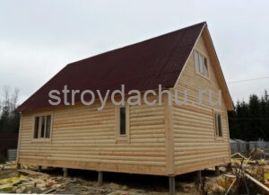 Сруб 6×6 м. из профилированного бруса 140×140 мм. (профиль полуовал), по проекту Семен (на свайно-винтовом фундаменте, кровля металлочерепица ⇓