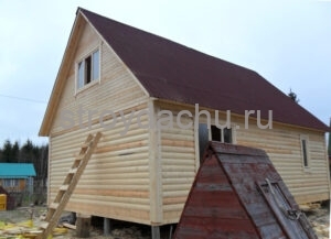 Фото строительства дома под усадку Размер: 6 × 7 м. с террасой Этажность: с мансардой Объект находится: в Ярославской области.
